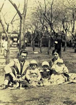 母に抱かれてピクニック。満1歳のとき、東京・大倉山の梅林