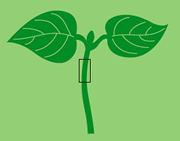 アズキの芽生え。本葉の下にある茎を実験に用いた。