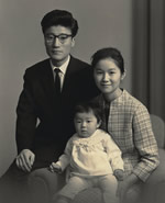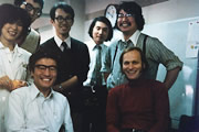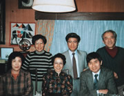 菅野先生(後列右端)の自宅で。前列右端はウイルス研究の先輩花房秀三郎先生(現大阪バイオサイエンス研究所名誉所長)。(後列中央:本人)