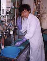運良く大阪大学に筋肉の研究で有名な大沢文夫先生(大阪大学名誉教授、名古屋大学名誉教授)がいらしたので、電話で研究室へ入りたいと伝えると、「えっ?来るの?」とあまりはかばかしくない返事に不安を感じながらも会いに行きました。教授室に入ると机と長椅子だけのがらんとした部屋に、インスタントラーメンをすすっているラフな格好の人が一人。大沢先生に違いないとは思いつつ、これが超切れ者と噂の大沢教授かと驚きを隠せませんでした。背広とネクタイで気合いを入れたのに拍子抜けです。顔もあげずに「どうしたの?」と聞かれたので「研究室に入りたいんですけど。」と伝えると「まあ、入るのは勝手だけど…。」という調子で、「うちは博士号をとっても就職できない人が25人いるから、あなたは26番目ですよ。卒業しても職はないよ。」と告げられてしまいました。多分、華やかな半導体分野を捨てて、こんな所に来るはずはないと思われていたのでしょう。結局、「勝手に入ったら。」の一言で無事入学できました。