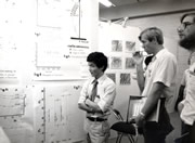 時々開かれた授業では、それからの時代に大切とされていた情報工学と電子工学(半導体工学)を中心に、量子力学や固体物理など、数学と物理学をたたきこまれました。入学前の予想に反してテレビのテの字も出てきません。大学院に進む時には、太陽電池で有名な浜川圭弘先生の若くてエネルギッシュな人柄に惹かれ、その研究室に入りました。実際やったのは、測定を基本にした泥臭い仕事でしたが、工学部の方から半導体の専門家が次々と基礎工学部に移ってこられて、最先端の研究をしているという気概の感じられる華やかさもありました。