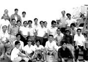東京大学海洋研究所の助手時代。白鳳丸船上、小笠原沖にて。最前列で腰掛けているのはコンビを組んだ服部先生。(中列右から2人目:本人)