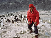 南極ロス島を調査中。海鳥の排泄物が窒素源となるため、この島に生える藻類は重い窒素を地球上で最も多く含む。