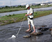 バイカル湖に流入するモンゴルの河川を調査中。