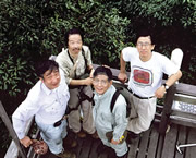 マレーシア、ランビル熱帯雨林のタワーの上で。右端は調査中の飛行機事故で亡くなった井上民二教授。(右から2人目:本人)