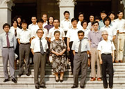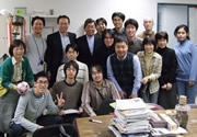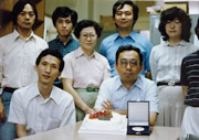 名誉教授となられた中井先生 (前列中央) を囲んで。左は、隣の講座の養老孟司教授 (前列右端:本人)