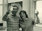 留学先のワシントン大学で。技官の女性が誕生日を祝ってくれた。