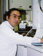 帰国し、教授となる。研究室の電子顕微鏡で観察中。