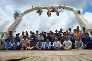 学術研究船白鳳丸にて全国のウナギ研究メンバーと(右から4人目:本人)。