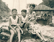 母と弟と(左端:本人)。