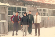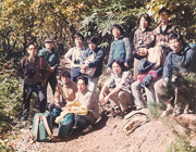 研究室の先輩と山登り(本人:右から二人目)。