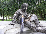 米国科学アカデミーの調印式の後でアインシュタイン像の前で。