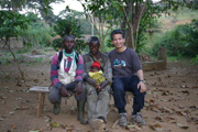 ギニアボッソウで野外観察をはじめた。研究所には各国の研究者がいる。