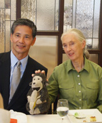 2010年9月、ジェーン・グドール博士と旅の友のミスターHと一緒に。