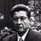 文化功労者賞の授賞式の挨拶の場で。後ろで花束を持っているのは妻。