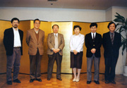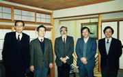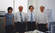 ERATOプログラムでお世話になった小野祐治事務参事(左から2人目)と岡本浩二技術参事(右端)。(本人:右から2人目)