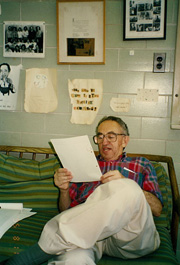 教授室でのアドラー教授(1995年)。教授からは「研究者は人生を通して向き合える研究テーマを持つべきである」という信念を受け継いだと思う。彼は今でも第一線で研究している。