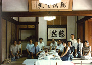 在米中にお世話になった野村眞康先生を囲んで(1979年、京都)。左から4人目が野村先生、6人目が小関先生、右から2人目が小関研で助手を務められた池村淑道先生、左端が本人。