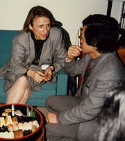 岡田研究室の助手の頃、ニコル・ルドワラン(Nicole LeDouarin、フランス国立科学研究センター)と寿司を囲んで(1987年。本人:右)。ルドワランは、キメラ動物を使った研究によって1986年に京都賞を受賞した。