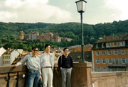 名古屋大学の教授の頃、助教授だった高橋直樹氏(中央、現・東京大学教授)とハイデルベルグで。ハイデルベルグには、マウス分子遺伝学会議(Mouse Molecular Genetics)に出席するために訪れた。(1989年。本人:右端)
