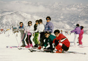 名古屋大学の教授の頃、研究室の皆で行った信州のスキー旅行。(本人:左端)