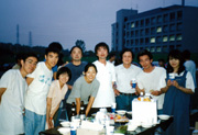 細胞生体工学センター長を務めた頃、大学院生のシンシア・パルメス−サロマ(Cynthia P Saloma、フィリピン大学、左から2人目)と、客員教授であったご主人のシーザー・サロマ(Caesar Saloma、フィリピン大学、左端)を自宅に招いて。(本人:右から2人目)