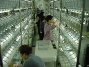 近畿地方発明センターには、10万匹のメダカを飼うために6000個の水槽を設置した。
