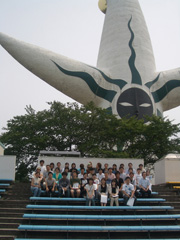 生命機能研究科のいくつかの研究室と合同で、万博記念公園にある太陽の塔の内部公開を楽しんだ。(2005年。本人:前から2列目の右端)