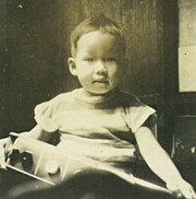 2才のころ。出生直後は頭髪が少なく親は心配したが、この頃は生えそろってキューピーみたいと言われた。