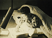 幼稚園生のころ。小さい頃からよく本を読んで過ごしていた。小3の時に急性腎炎で半年間休学してからは、その傾向がより強くなった。今に至るも活字中毒で、寝る前の布団の中での読書は現在に至る習慣となっている。