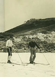 大学入って、暫くは高校の旧友と夏山に出かけた。乗鞍の雪渓で夏スキーを楽しんでいるところ。(本人:左)