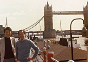 ロンドンに留学中の1980年、ニューヨークから訪れた同級生の武藤誠くん(現・国際高等教育院特定教授)とタワーブリッジの前で。武藤くんはその頃ロックフェラー大学に留学していた。(本人:右)