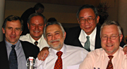 2004年12月ウェルカム研究所以来の友人であり、一酸化窒素の発見で有名なSir Salvador Moncadaの60歳の記念パーティーで。前列左よりKevin Mullane, Salvador Moncada、Greg Dusting、後列右より本人、Stuart Bunting。
