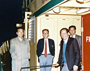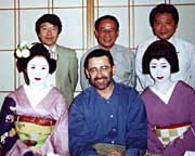 Richard Treisman (英国癌研究基金ロンドン研究所所長)と祇園のお茶屋で。Treisman(前列中央)、後列右より、伊藤嘉明先生、本人、西田栄介先生(1999年10月)。TreismanとはRhoによる細胞悪性化で共同研究していた。