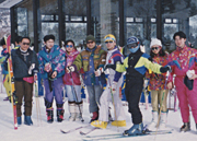 1992年に薬理学第2講座の教授に就任した。その頃は、冬はよく教室のスキー旅行を行なった。1993年冬、志賀高原で(左端:本人)。左から4人目、川口義宏くん(現・iPS細胞研究所)、右端、渡邊直樹くん(現・東北大学生命科学研究科)。その前で胸を張っているのが垣塚彰くん(現・京都大学生命科学研究科)。中西重忠先生から、中西研出身の垣塚くんを紹介してもらい研究室が発展した。