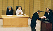 日本学士院賞授賞式にて、両陛下の前で賞を授与される。2006年7月、日本学士院で。