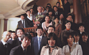 2009年の還暦祝賀会にて集合写真(本人:花束を持って)。