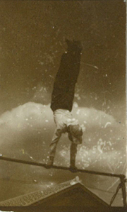 高校生の頃、学校の鉄棒で大車輪をしているところ。スポーツ万能だった。筋肉質で体が重かったことが、海に潜るのに向いていたのかもしれない。