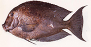 サンゴ礁に棲む藻食魚のサザナミハギ。体にさざ波のような模様があるのが特徴。この魚の消化管から、シガトキシンの発生源と思われる藻類(G. toxicus)を初めて発見した。