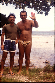 海底の死サンゴの採集には、タヒチ随一のダイバーで漁師のジャック・ベネットさんが大活躍してくれました。彼と大親友になって、兄弟の契りまで交わしたのはかけがえのない思い出です。実は、彼は危ないところを救ってくれた恩人でもあるのです。ガンビエル諸島に来て日が経つにつれ、私と井上さんは毎日変わらぬコンビーフの生活に我慢ができなくなってきました。どうしても魚が食べたくなり、「少しくらいなら大丈夫だろう」と食べたのです。その時ベネットさんがすごい剣幕で「やめろ!」と腕を掴んで止めてくれたのです。二口ほど食べただけだったのに、翌日雨に打たれるとピリピリ痛むシガテラ特有の症状が出ましたから、彼が止めてくれなかったらどうなっていたか分かりません。