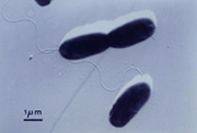 ヒメモサズキから発見した、TTXを生産するバクテリアShewanella alga。この発見がきっかけで、フグ毒の原因としてバクテリアが注目されるようになり、TTX生産バクテリアが他にも何種か見出された。