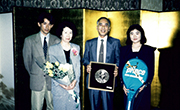日本農学賞・読売農学賞を受賞したとき。娘(右端)が持っているのは卒業生たちがお祝いにプレゼントしてくれたテニスラケットで、現在も愛用している。