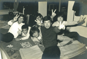 大学生時代の野外旅行のスナップショット。(本人:右端)