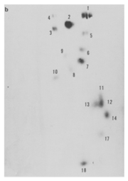 大学院では、マウスの細胞を用いてリボソームRNAのサブユニット28S、18S、5Sの塩基配列を解析しながらリボソームがどのように合成されるのかを探りました。当時は配列を自動で読み取るシーケンサーはありませんから、さまざまな分解酵素でつくったRNAの断片をSanger法Sanger法フレデリック・サンガー(Frederick Sanger)博士が開発したRNA塩基配列決定法。サンガー博士はタンパク質のアミノ酸配列決定法とDNAの塩基配列決定法も開発しておりノーベル化学賞を2度受賞している。で電気泳動し、スポットを手作業で読み取ってパズルを組み立てるように塩基配列を読み解いていきました(図1)。今ではあっという間にできることを、長い時間をかけて地道に解析していく時代でしたが、分子生物学の手法を身につけ研究者としての基盤を築けたので決して無駄な時間ではなかったと思っています。