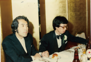 恩師の村松先生(左)が結婚式の仲人をしてくださった。困った事に、仲人の方が恰好いい。