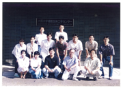阪大へ移った頃。目野主税さん(3列目左)がノックアウトマウスの作製、西條幸男さん(最前列右端)が転写制御の解析とそれぞれ分担して研究室の実験技術の基盤を築いてくれた。(本人:最前列右から2番目)