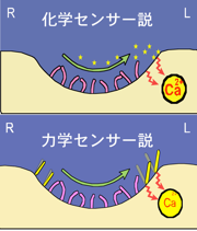 図6:ノード流から細胞がどのように情報を受け取っているのかを説明する二つの仮説