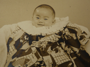 生後100日記念。祖父が易者さんに名前を考えてもらった際、「この子は研究者になる」と言われたそうだ。