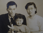 3歳の誕生日に両親と。両親はともに昭和4年生まれ。父は中学の時に予科練に入り特攻隊に志願していたが、兄(私の叔父)が戦死していたため上官に出陣を止められたそうだ。