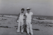 高校の夏休みに父(右)の職場の研修会に同伴し鳥取砂丘を訪れ新種のカビを採集した。